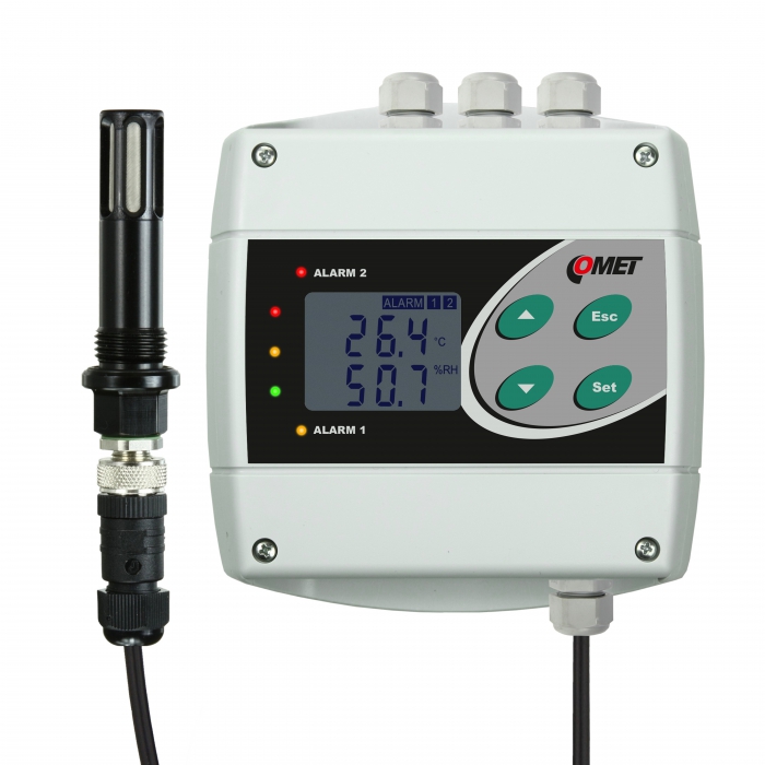 Kábeles hőmérséklet és páratartalom érzékelő. A mért értékek átszámítása más páratartalom értelmezésre: harmatponti hőmérséklet, abszolút páratartalom, fajlagos páratartalom, keverési arány, fajlagos entalpia.